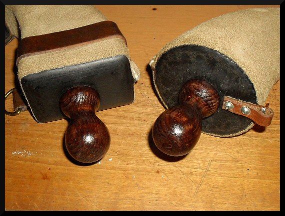 Povrchová úprava je už na každém, nejlépe je použít kvalitní akrylátové barvy ve spreji a nakonec čirý lak a přeleštit. Druhá možnost, kterou jsem taky použil, je polepit povrch tenkou broušenou kůží s použitím lepidla "Chemoprén". Záleží na každém, co zvolí. Já zvolil potah tenkou broušenou kůží, na "hřbetu" rohu sešitou sedlářskou nití.