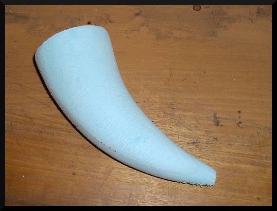 Na domácí výrobu levného rohu postačí menší blok/silnější deska polyuretanu, nebo v polystyrenu [používají se na stavbách či zateplování domů]. Z této desky vyrobíme pozitivní kopyto potřebné pro výrobu rohu. Na desku si obkreslíme tvar rohu, vyřízneme ostrým nožem a hrubým smirkem vytvarujeme do tvaru rohu. Potom, když už má kopyto hrubý tvar, postupně jemnějšími smirky dotvarujeme a vyhladíme. Případné propadliny, či vydrolená místa vytmelíme brousitelným akrylovým tmelem a dobrousíme.